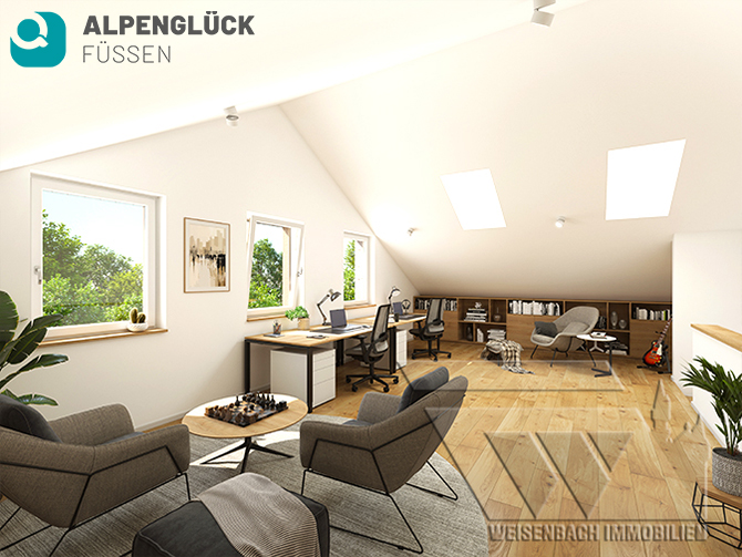 großzügigen, offenen Raumgestaltung und lichtdurchfluteten Räumen, bietet Ihnen diese Immobilie flexible Nutzungsmöglichkeiten. Gekrönt wird das Ganze durch einen unvergleichlichen Schloss – und Burgenblick, auf Neuschwanstein, die Burgruine Falkenstein und die Ruinen Hohenfrey- und Eisenberg.