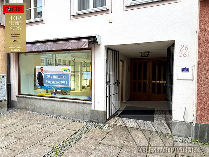 übersichtliche Ladenfläche befindet sich im Erdgeschoss, eines sehr gepflegten Wohn- und Geschäftshauses, am Füssener Schrannenplatz. Ihre neue Gewerbeeinheit bietet Ihnen neben der guten Geschäftslage, eine perfekte Sichtbarkeit, mit erhöhter Lauffrequenz, sowie helle Räumlichkeiten. Ein Abstellbereich und ein WC ist vorhanden. Hier lässt sich Ihr Wunsch nach einer kleinen Selbständigkeit wunderbar verwirklichen.