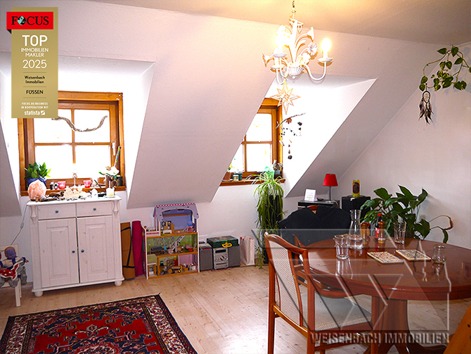 Die gut geschnittene, vollständig möblierte Mietwohnung befindet sich im Dachgeschoß eines gepflegten Mehrfamilienhauses mit nur 5 Einheiten in Füssen.