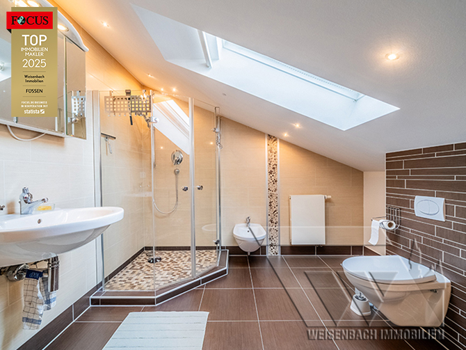 Im Dachgeschoss sind zwei weitere Schlafzimmer vorhanden. Ein besonderes Highlight dieses Immobilienangebots ist, dass eines der beiden Schlafzimmer in der obersten Etage über ein eigenes Bad mit Dusche und WC verfügt.
