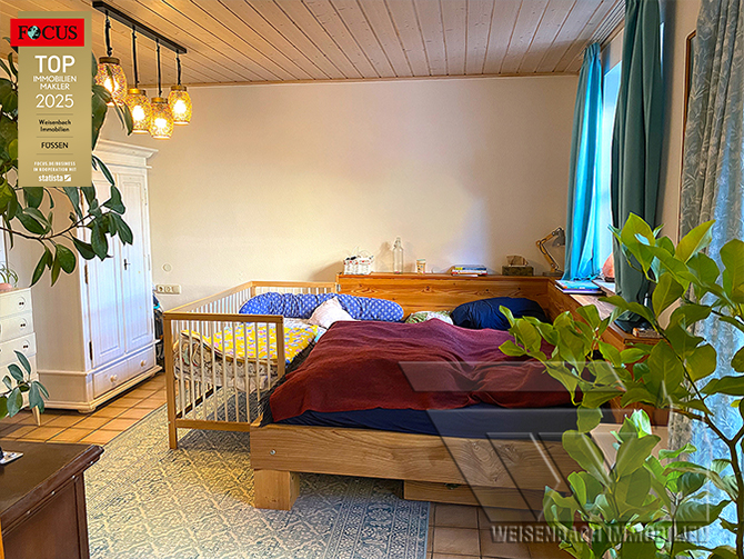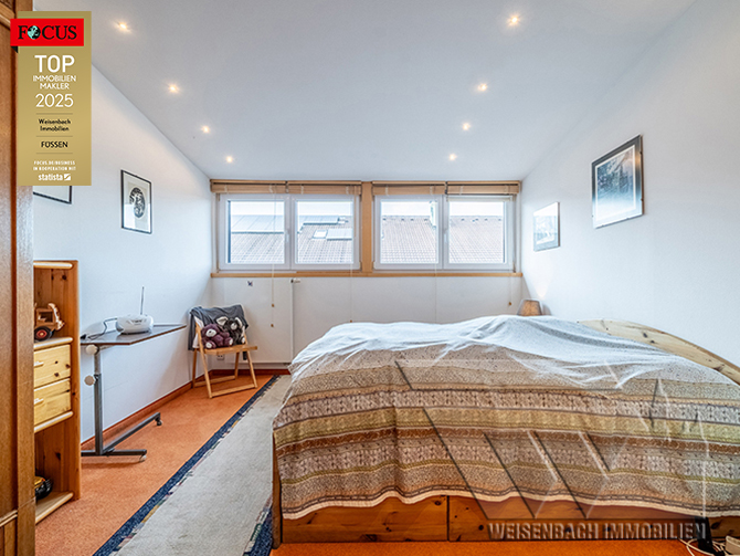 Im 1. Obergeschoss befinden sich zwei Schlafzimmer und das sehr gepflegte Bad mit Badewanne und einem WC. Vom geräumigen Elternschlafzimmer mit der begehbaren Ankleide ist auch der Südbalkon des Obergeschosses zugänglich, der Sie täglich dazu einlädt die Seele baumeln zu lassen und einen herrlichen Ausblick zu genießen.
