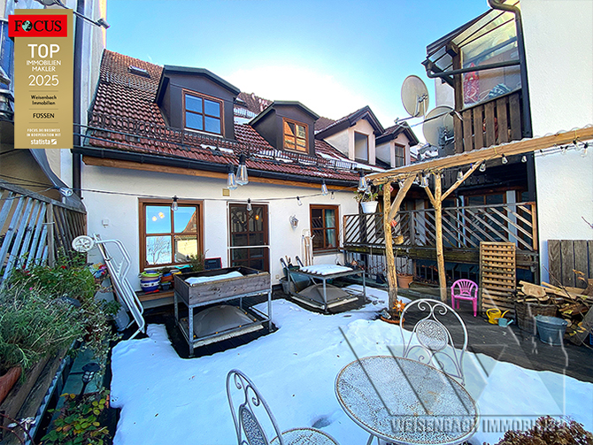 Hier trifft eine bevorzugte und zentrumsnahe Wohnlage mit schönen Bergblick mit eine gute und gelungene Aufteilung. Das im Jahr 1966 in solider Massivbauweise errichtete, langjährig vermietete Reihenhaus befindet sich in sonniger und bevorzugter Lage, nur wenige Gehminuten von der Füssener Innenstadt entfernt.
