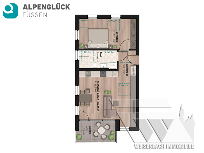 Die zauberhafte Füssener Altstadt mit ihrer romantischen Fußgängerzone, den zahlreichen Cafés, Restaurants und Einkaufsmöglichkeiten erreichen Sie in mit wenigen Schritten. Auch Einkaufsmöglichkeiten für den täglichen Bedarf, verschiedene Ärzte, Banken und eine Apotheke können von der hellen und freundlichen Wohnung direkt erreicht werden. Zahlreiche Einkaufsmöglichkeiten, verschiedene Ärzte, Banken, eine Apotheke können von der hellen und sonnigen Wohnung absolut problemlos in wenigen Schritten erreicht werden. Die Füssener Altstadt mit Ihrer zauberhaften Fußgängerzone, den zahlreichen Cafés, Restaurants und Einkaufsmöglichkeiten erreichen Sie mit wenigen Schritten. Das Wohn- und Geschäftshaus wird ganzjährig von einem Hausmeisterservice betreut. Alle am Haus anfallenden Arbeiten, wie z.B. die Pflege der Grünanlage, die Reinigung der Zugangswege und Hausflure, die Bereitstellung der Mülltonnen zur Abholung und die Winterdienste werden übernommen. Die charmante Eigentumswohnung besticht auch durch die die flexiblen Nutzungsmöglichkeiten und ist ideal als Erst- und Zweitwohnsitz, wie auch als Kapitalanlage geeignet. Selbstverständlich eignet sich diese Immobilie auch perfekt als Kapitalanlage und lässt sich jederzeit kurzfristig und sehr gut vermieten.