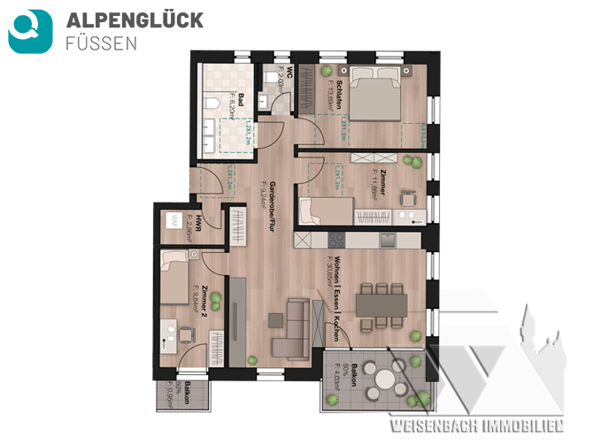 Im Projekt Alpenglück können Sie sich den Traum von der eigenen Wohnung zu bezahlbaren Preisen erfüllen. Ein KfW-Förderdarlehen in Höhe von 150.000 € für nachhaltigen Wohnungsbau erleichtert Ihnen die Finanzierung.