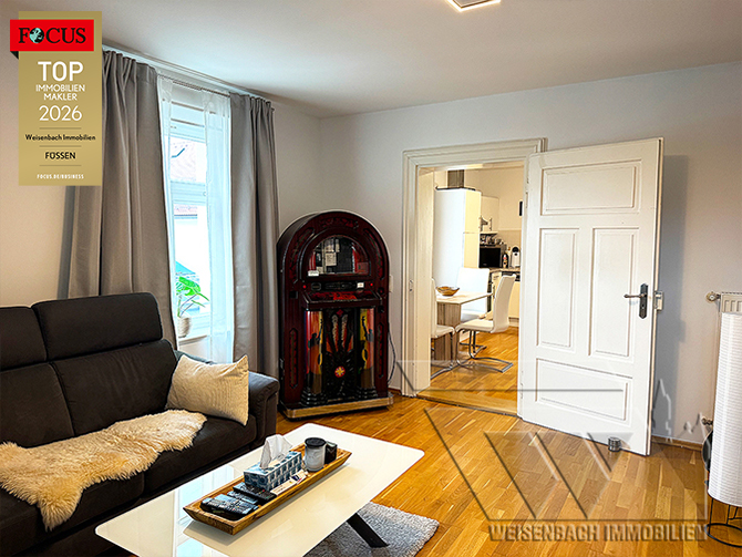 Diese hochwertig ausgestattete und modernisierte 2,5-Zimmer-Maisonettewohnung stellt eine hervorragende Investitionsmöglichkeit in einer der gefragtesten Wohnlagen Füssens dar. Die absolut gepflegte, sehr gut und nachhaltig vermietete Immobilie befindet sich im 3. Obergeschoss eines historischen Einzeldenkmals, das im Jahr 2006 Jahren kernsaniert wurde und sich heute in einem Topzustand präsentiert.