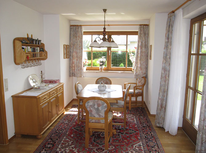Die sehr gut geschnittene 3-Zimmer-Eigentumswohnung befindet sich in absolut bevorzugter und sonniger Wohnlage in einem sehr gepflegten 6-Familienhaus im Füssener Kurgebiet Weidach. Neben der sehr ruhigen und sonnigen Lage bietet Ihnen diese schöne Wohnung eine sehr gute Aufteilung mit hellen und sonnigen Räumen, einen schönen und unverbaubaren Bergblick, ein großzügiges Wohnzimmer, eine separate Essecke, eine separate Küche mit Einbauküche, ein geräumiges Bad, ein zusätzliches separates WC und eine herrliche und nicht einsehbare Südterrasse. Zur Wohnung gehört selbstverständlich neben einem Kellerraum auch ein Tiefgaragenstellplatz. Auf Wunsch ist die Wohnung komplett möbliert. Im Keller des Hauses befindet sich auch die Waschküche mit einem Stellplatz für Ihre Waschmaschine und Ihren Wäschetrockner. Die zauberhafte historische Füssener Altstadt mit ihren zahlreichen Einkaufsmöglichkeiten, Cafés und Restaurants ist ca. 15 Gehminuten von der in Füssens bevorzugtester Wohnlage gelegenen Wohnung entfernt.