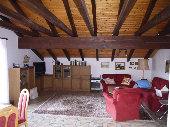 Das ehemalige Bauernhaus bietet Ihnen neben einer ruhigen, sonnigen und charmanten Wohnlage weiterhin einen schönen Blick, einen sehr großen und ausbaubaren Dachboden, einen Kachelofen, eine Teilunterkellerung, verschiedene gemeinschaftliche Nebengebäude und ein ca. 2.200 m² großes Gemeinschaftsgrundstück.