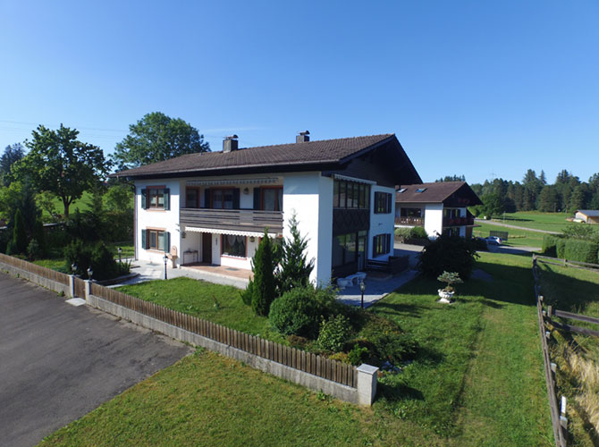 Diese Immobilie ist auch für Kapitalanleger sehr interessant. Jede der Wohnungen im Haus kann sehr gut und problemlos kurzfristig vermietet werden. Aktuell ist das Anwesen in drei separate Wohnungen aufgeteilt. Das im alpenländischen Stil erbaute Haus kann jedoch jederzeit ohne großen baulichen Aufwand auch als ein Ein- oder Zweifamilienhaus genutzt werden. Die einzelnen Wohnungen, die über die drei Etagen des Hauses verteilt sind, sind alle in einem gepflegten Zustand und bieten Ihnen neben einer guten Aufteilung, hellen und sonnigen Räumen weiterhin Bäder mit Tageslichtfenstern und Einbauküchen. Teilweise verfügen die Wohnzimmer über Parkettböden. Die Wohnung im Dach- und Obergeschoss verfügen auch über einen herrlichen Blick auf die Allgäuer Alpen. Selbstverständlich bietet Ihnen das großzügige Haus mit seinen zwei Einzelgaragen auch ausreichend Parkmöglichkeiten.