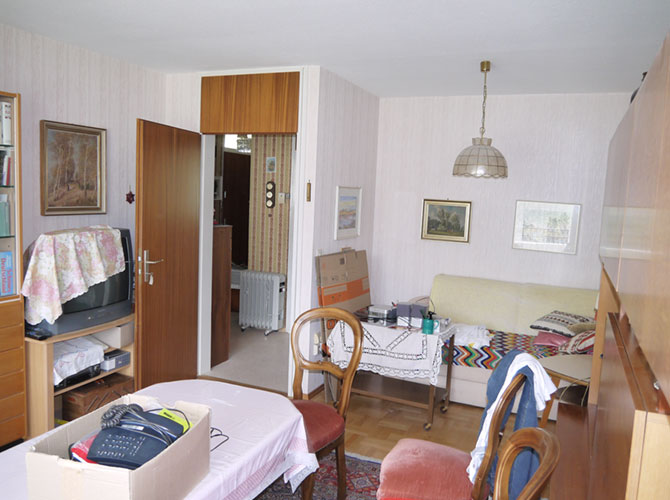 Renovierungsbedürftige 2-Zimmer Eigentumswohnung mit Südbalkon und schönem Bergblick in sonniger und ruhiger Wohlage