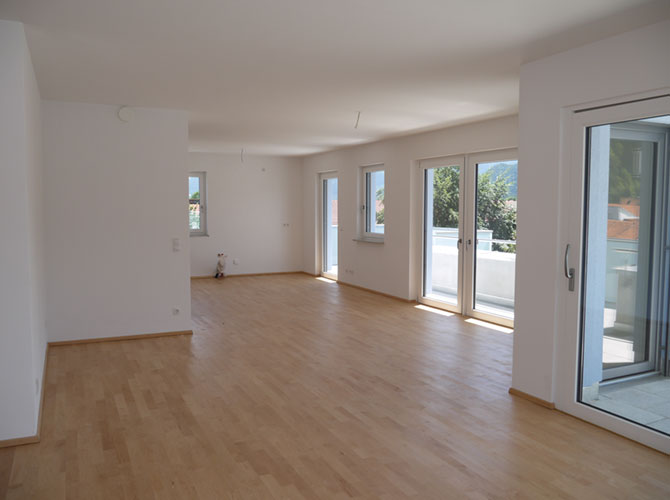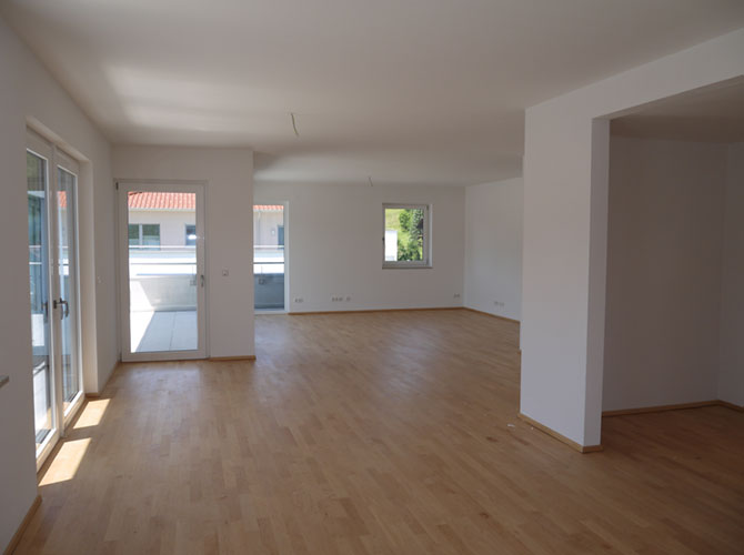 Neben der außergewöhnlich großzügigen Aufteilung, lichtdurchfluteten R.umen, massiven Parkettböden (geölter kanadischer Ahorn), einer Fu.bodenheizung in allen Zimmern, zwei großen Dachterrassen (Südwest und Südost), zwei stilvollen Bödern, integrierten Deckenlampen und einer begehbaren Ankleide verfügt die Wohnung selbstverständlich auch über modernste Haustechnik und eine exzellente Elektroausstattung. Eine kontrollierte, individuell regelbare, mechanische Wohnraumbe- und Entlüftungsanlage sorgt in jeder Wohnung für eine beständige Frischluftzufuhr und für ein optimales Raumklima.
