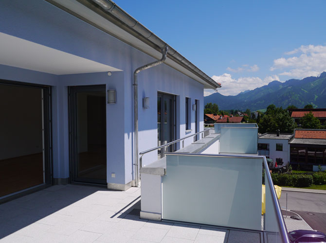 Dieses lichtdurchflutete Penthouse, bei dem es sich um einen Erstbezug handelt, vereint höchste Wohnqualität mit einer luxuriösen Ausstattung, eine absolute Toplage und einen atemberaubenden Panoramablick! Die romantische Füssener Altstadt mit Ihrer zauberhaften Fußgängerzone, den zahlreichen Cafés und Restaurants erreichen Sie mit nur wenigen Schritten erreichbar. Die hervorragend gelegene 3 ½-Zimmer-Eigentumswohnung befindet sich in der 3. und obersten Etage eines vor Kurzem fertig gestellten Mehrfamilienhauses in direkter Nähe der Füssener Altstadt. Wahlweise erreichen Sie Ihre ca. 145 m² große Wohnung bequem mit einem Aufzug, oder über ein großes und geräumiges Treppenhaus. Ihr neues Penthaus besticht neben der absoluten Toplage, dem herrlichen und unverbaubaren Berg- und Schlossblick durch eine repräsentative Ausstattung, die keinerlei Wünsche an höchsten Wohnkomfort offen lässt.